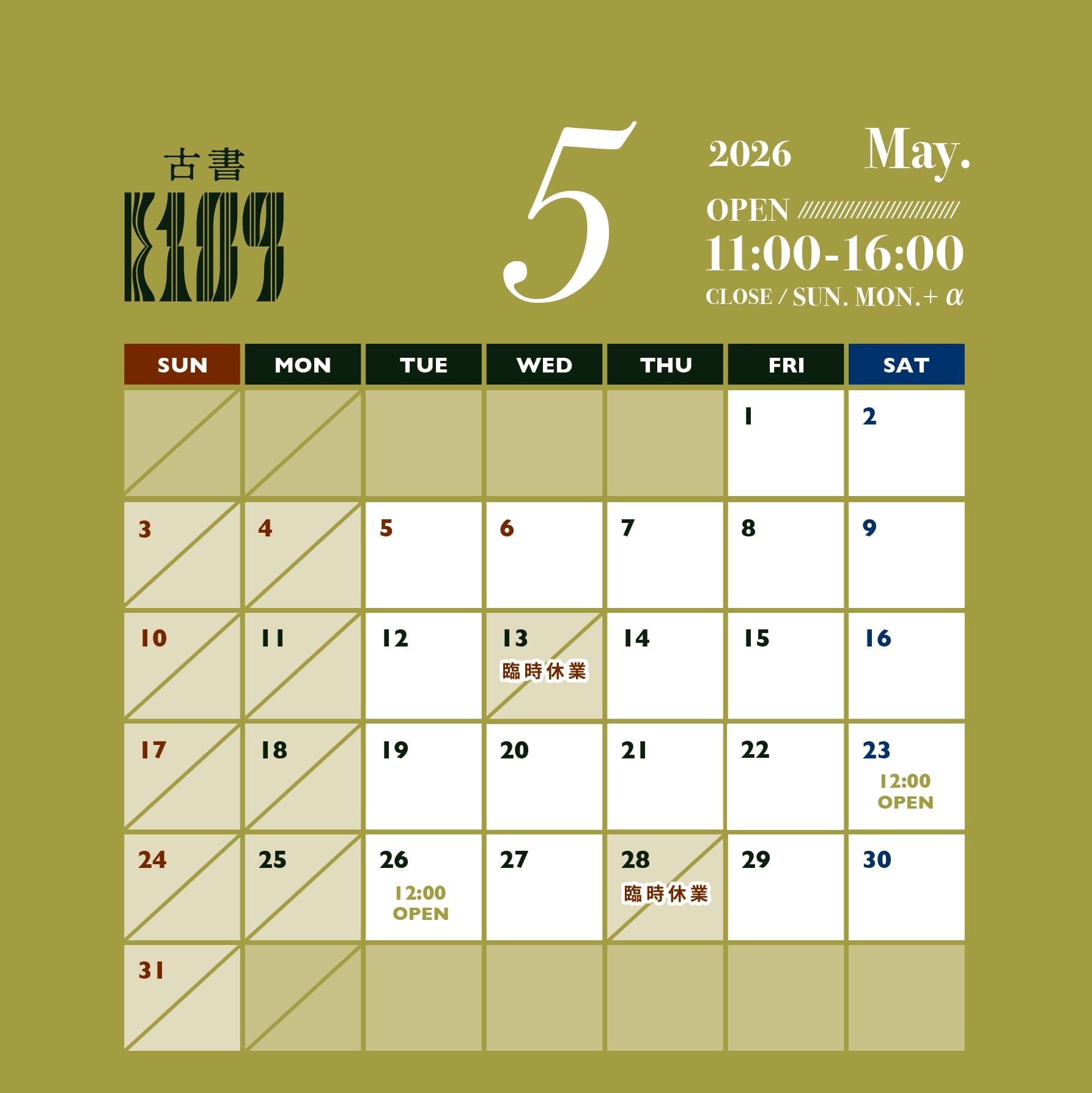4/30、5/1.2.5.6は通常通り11:00-16:00営業致します。この機会にぜひご来店くださいませ。