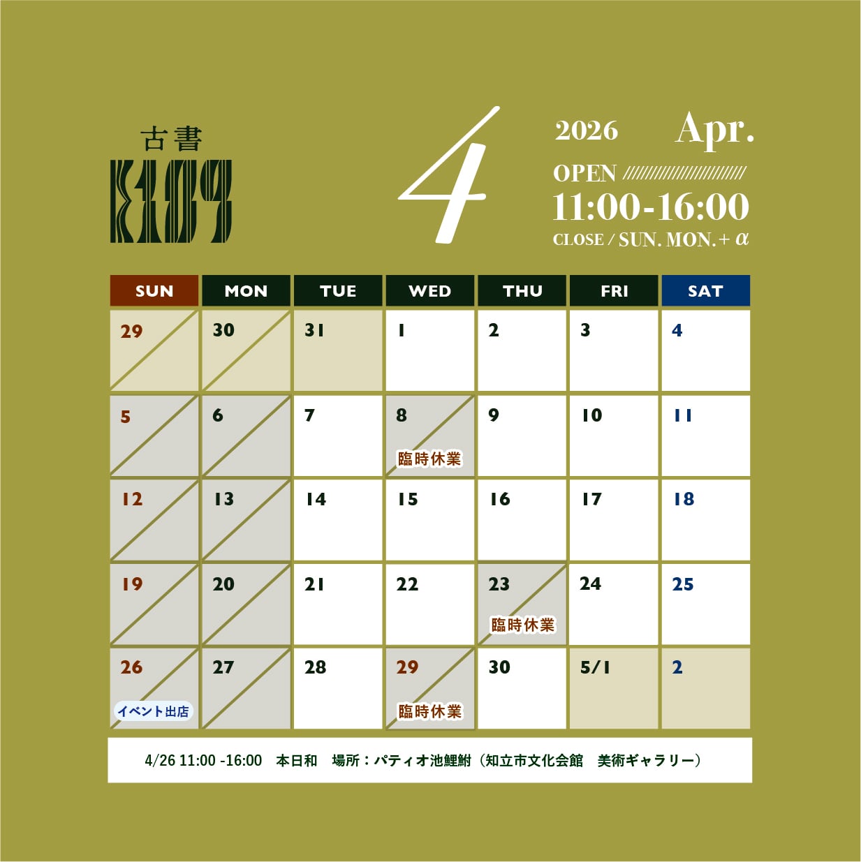 ※臨時休業有り(詳細はお知らせ・SNSにて)